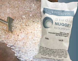 Our Oceanside Compatible Studio Nuggets® are specially formulated and tested to ensure compatibility with our entire line of Oceanside Compatible products. This allows blowers to utilize our accessories for color and accents. The compatibility also allows for unique collaborative efforts across the hot and warm glass arts in the form of “Roll Ups”, such as the beautiful Roll Up vessel shown on this page