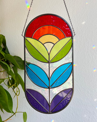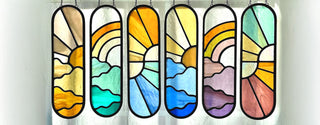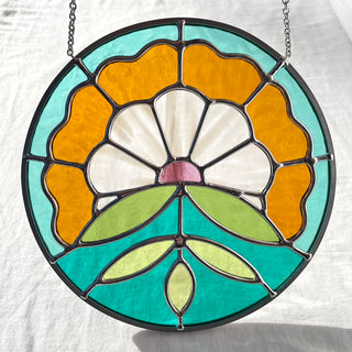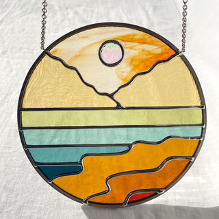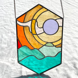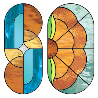 Flux & Flow Glass is a team of two artists, Kilani Glenn and Rachel White, based in Sacramento and Nevada City, California. Our work is inspired by a shared love of color, geometry, nature, and midcentury design. We focus on minimizing the linework found in traditional stained glass patterns, while maintaining structural integrity, to create a contemporary aesthetic with vintage vibes.