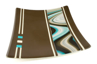 The “OpalArt Stir” is very dynamic and when paired with dense rivers of strong color, it makes a strikingly beautiful statement. It helps to be very conscious of what’s going on with your design when you’re using such a bold glass. The Southwest Fusers Reserve featured here is set off by large areas of solid Peacock and perfectly accented with a small amount of Persimmon. Accenting with colors that appear in the Fusers’ Reserve sheet itself is always a safe bet.