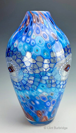 Blue Raven blown vessel by Clint Burbridge